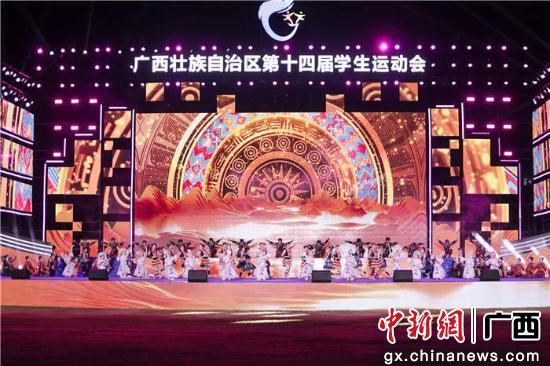 中新网广西新闻7月12日电 7月11日晚,广西壮族自治区第十四届学生运动会在广西科技师范学院开幕。