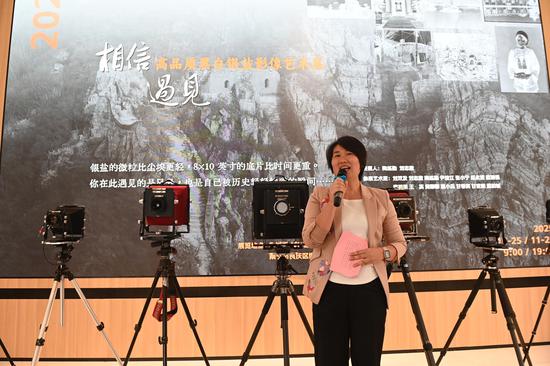 图为覃湄在介绍办展意义。记者 蒋雪林 摄