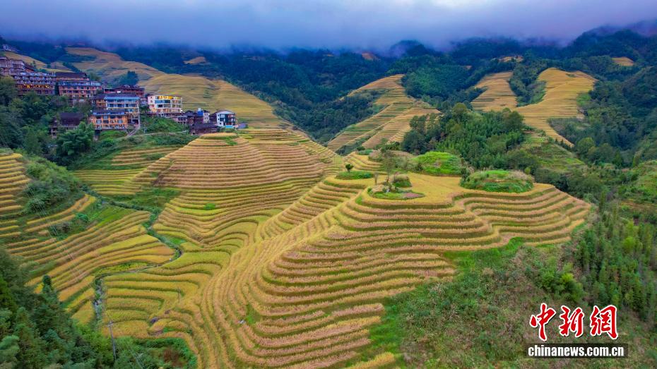 广西龙胜金坑寨梯田现“金色海洋”盛景