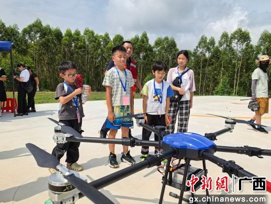 “与传统耕作方法相比,无人机的优势是高效作业,节省时间和成本,喷药、施肥等更精准、更均匀,有利于农作物品质和产量提升。”活动中,科普老师向大家普及农业植保无人机知识。学生们围聚在专业飞手周围,近距离观摩无人机飞行作业。