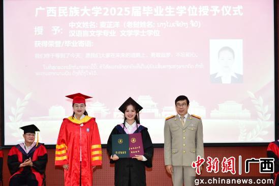 中新网广西新闻6月24日电 (马小丽 陈昱冰)近日,广西民族大学举行首届中老“2+2”联合培养中文师范生项目学生毕业典礼暨学位授予仪式。