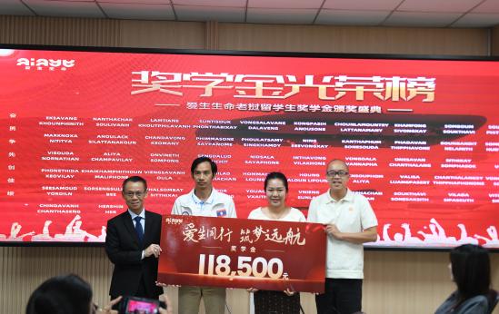 当天,广西爱生生命科技有限公司举办老挝留学生奖学金颁奖盛典,向52名优秀留学生颁发奖学金。老挝留学生尼拉民作为代表,发表获奖发言。他表示,将以优异成绩回馈社会,成为促进老中友谊与合作的桥梁。