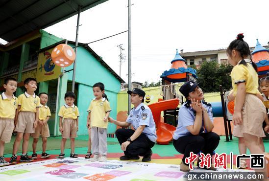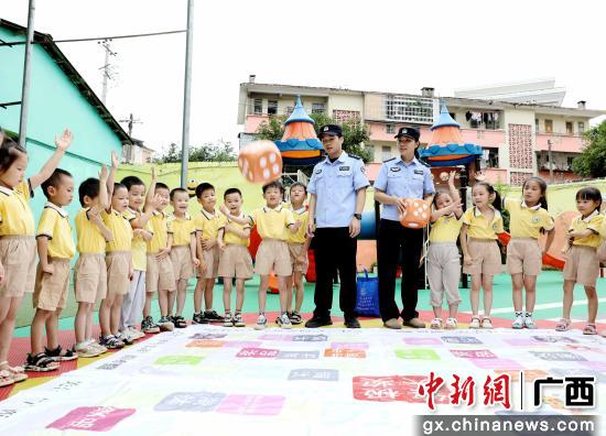 6月19日,广西贺州市公安局平桂分局民警辅警走进辖区幼儿园,借“禁毒飞行棋”游戏开展禁毒宣传。活动中,孩子们在引导下,掷骰子、走棋格,在互动中认识毒品、了解危害,树立防毒意识。通过寓教于乐的方式,让禁毒知识在童趣中扎根,为幼儿健康成长筑牢安全防线。(完)