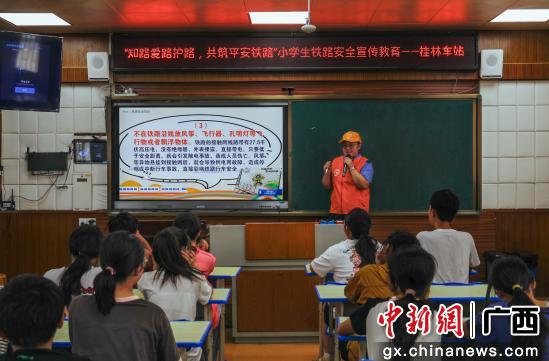 今年6月是第24个全国“安全生产月”。为筑牢铁路安全防线,桂林火车站团委紧扣“人人讲安全、个个会应急——查找身边安全隐患”主题,组织青年志愿者分批前往铁路沿线附近中小学校开展普法宣传教育活动。