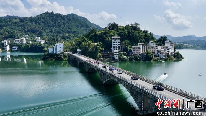 图为车手们经过巴马赐福湖赛段。赛事组委会供图