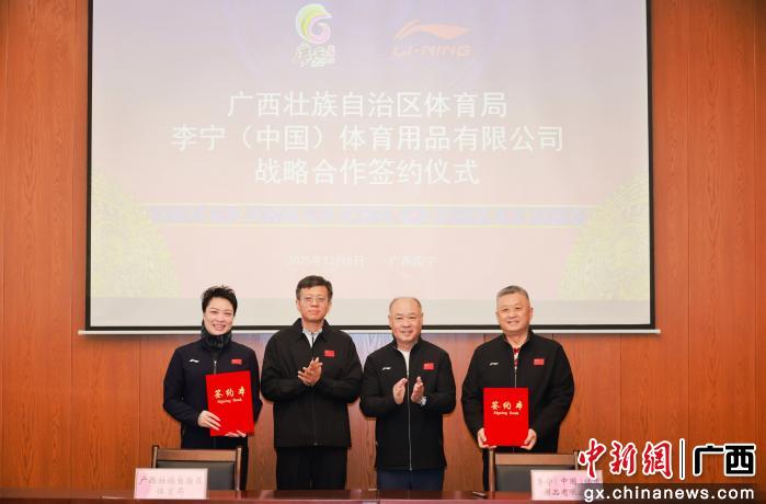 中新网广西新闻12月9日电 12月8日,广西壮族自治区体育局与李宁集团战略合作签约活动在江南训练基地举行。