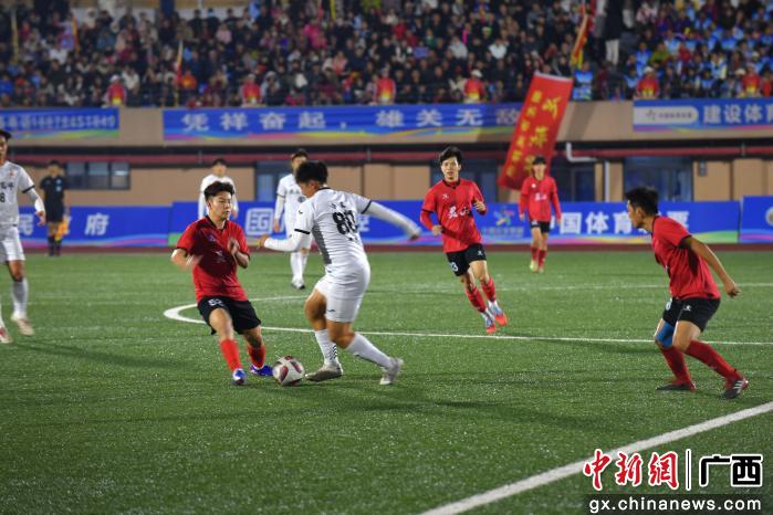 中新网广西新闻2月1日电 (古浩天)1月31日晚,2025-2026年广西县级足球超级联赛(简称:广西“县超”)桂南赛区第三轮对决在凭祥市文化体育中心足球场开启,崇左市凭祥市队主场对战钦州市灵山县队,11640名观众在现场见证这场足球盛宴。