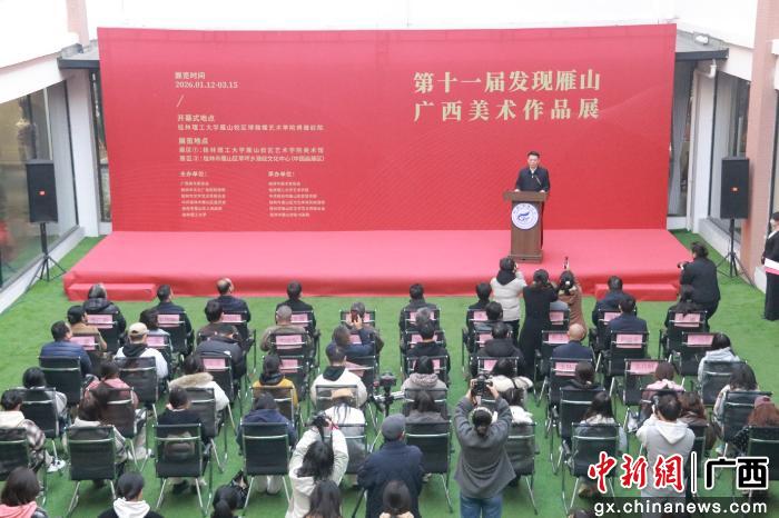 中新网广西新闻1月14日电(徐宗飞 陶淑芸)1月12日,第十一届“发现雁山——广西美术作品展”在桂林理工大学雁山校区开幕。展览展出作品共180件(含优秀奖作品50件),涵盖中国画、油画、版画、漆画、水彩、雕塑、艺术设计等多个艺术门类。