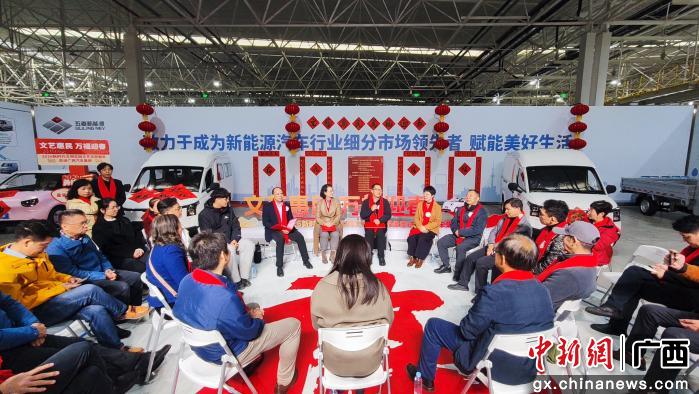 黄才强介绍,正是基于这份信念,柳州市文联围绕打造“龙城笔阵”文化品牌,集结文艺力量,如笔阵前行,深入柳州发展的主战场、最前沿。走进广西汽车集团生产车间,正是“龙城笔阵”服务大局、赋能实体的具体行动。集团作为引领全市高质量发展的核心引擎,前瞻布局新能源赛道,公司依托全范围智能制造、数字孪生技术、光伏发电系统等国内领先的技术体系,不仅在新能源物流车领域销量持续领跑,更成功开拓了欧美日韩等高端国际市场,生动诠释了“柳州智造”向“中国智造”跨越的坚实步伐。这些成绩的取得,凝聚着每一位产业工人的智慧、汗水与拼搏。