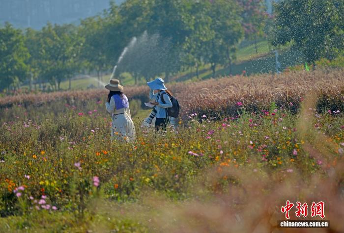 广西南宁:粉色狗尾巴草海成民众初冬“打卡地”