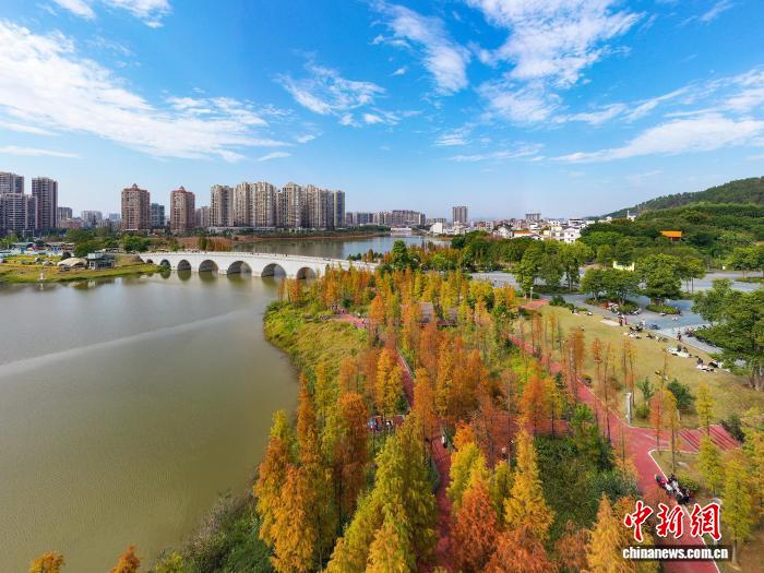 近日,广西梧州市苍海公园水杉由绿转红,层林尽染。彩色步道、湖水与石拱桥相映成趣,构成一幅斑斓的冬日画卷,吸引不少市民游客前来驻足赏景、拍照打卡。……