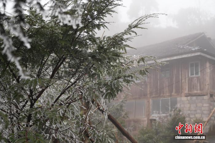 寒潮来袭 广西苗乡变身冰雪世界