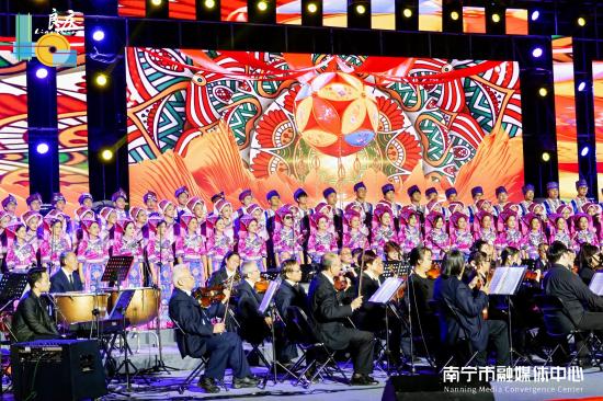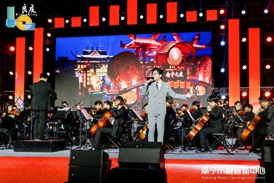 中新网广西新闻12月1日电 (记者 黄艳梅)11月30日晚,“丝路之声 美美与共”嘹啰交响音乐会暨“良辰美景 自在良庆”2024南宁市良庆区民俗文化旅游活动开幕式,在良庆区五象湖公园举办。