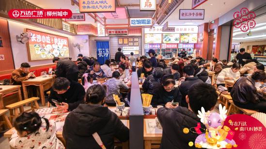 春节假期期间,万达广场内的餐饮消费也十分火爆。广西15座万达广场700多家餐饮商户,推出了丰富多样的新春主题团餐,从传统年夜饭到特色地方美食,应有尽有。许多餐厅提前预订爆满,年夜饭订单同比增长20%,让市民在春节品尝美食的同时,感受不同地域的饮食文化,带动消费热潮。同时,广西15座万达广场节日期间开展“吃美食,领取39.9元观影优惠券”“吃美食,抢19.9元早鸟观影券”等餐饮+影城联动活动,促进餐饮销售、票房同步增长。