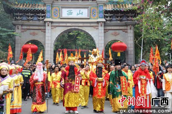 中新网广西新闻2月7日电(覃昌业)2月2日,农历正月初五,一场热闹的“福星高照民俗巡游”迎财神活动在广西桂平市西山风景名胜区举行。