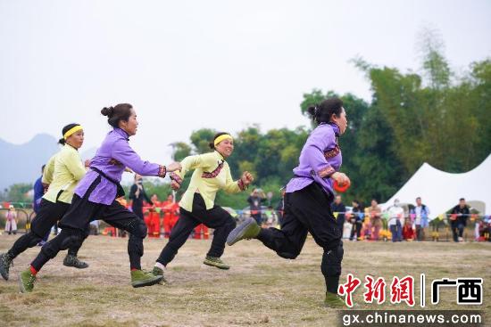 主裁判长点燃赛事花炮,一场别开生面的花炮比赛正式开赛,来自左州镇的4支队伍率先展开激烈角逐。对阵双方奋力扑抢、严密防守、快速进攻,将花炮投进花篮,以力量与智慧生动展现着这项“东方橄榄球”运动的独特魅力。