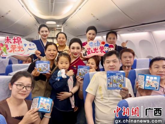 中新网广西新闻5月1日电 (杨春莹 陈丹丹)4月30日,中国南方航空广西分公司在部分航班上组织开展以“木棉荣光”为主题的五一劳动节特色航班活动,将客舱化作流动的劳动文化讲堂,为旅客营造温馨旅程。