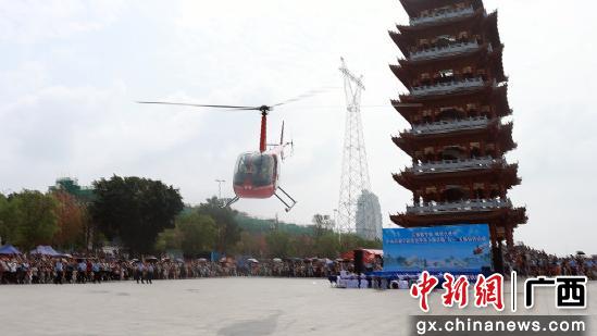 中新网广西新闻5月8日电(刘佩林 麦栋华 莫舒华)近日,广西贵港市平南县在城区江北公园举行低空旅游观光首飞仪式暨“五一”文旅宣传活动。