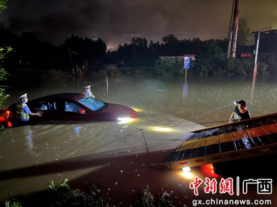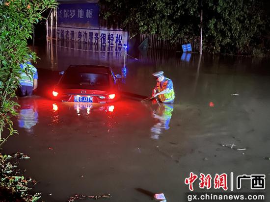- 司机驾车被困内涝 柳州民警冒雨成功救援