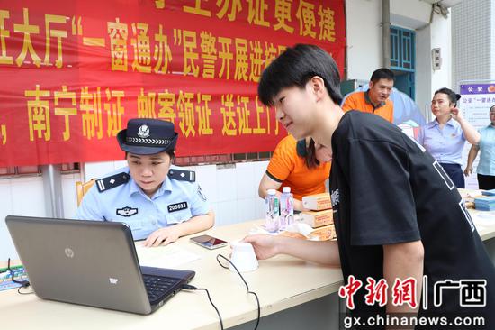 中新网广西新闻5月22日电 (韦彩明)“不用父母带着我们去到派出所,在教室利用课间几分钟时间就把身份证办好了,简直是太方便了!”柳州市柳江区第二中学的一位学生在办理完身份证后开心对民辅警竖起大拇指。