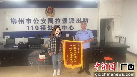 中新网广西新闻6月1日电 (龚芳芳)“警察同志,真的太感谢你们了,这么快就帮我找回了手机,谢谢!”5月29日,辖区群众周女士将一面印有“雷霆出击破案神速,一心为民廉洁奉公”字样的锦旗送到柳州市公安局拉堡派出所民警手中,对民警为其寻回丢失的手机表示感谢。