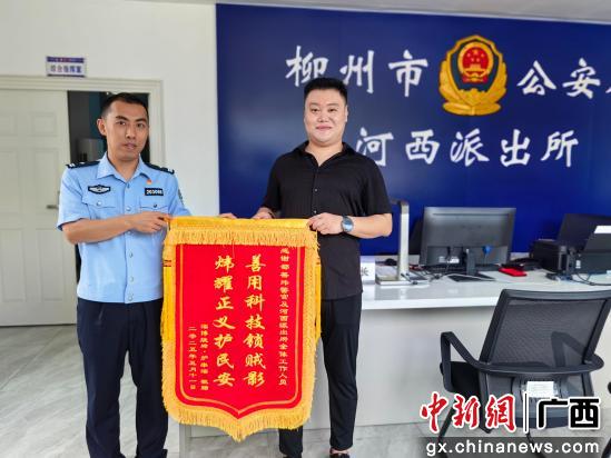 中新网广西新闻5月28日电(郑翰林)“善用科技锁贼影,炜耀正义护民安。”近日,一面构思精巧的锦旗被送到柳州市河西派出所民警邵善炜手中。锦旗上的诗句不仅蕴含着群众对警方高效办案的肯定,更以首字连成的“善炜”二字,向这位民警传递着无声的“击掌”。