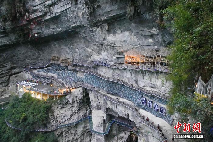该书店在“天坑”中沿崖壁而建,在不破坏原有地貌的前提下与自然景观深度融合,为游客提供艺术空间和奶茶、咖啡等主题消费场景。……