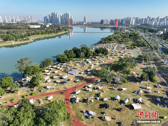 11月29日,广西南宁,不少市民趁好天气来到邕江边风景宜人处露营,享受周末时光。……
