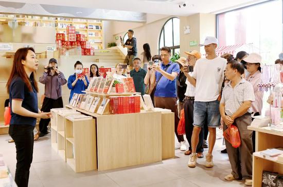 22日下午,采风团来到凭祥友谊关国门书店打卡拍摄。书店内琳琅满目的文创产品吸引了他们的目光,从精美的手工艺品到富有创意的文具,这些文创产品将崇左特色与现代设计完美融合。
