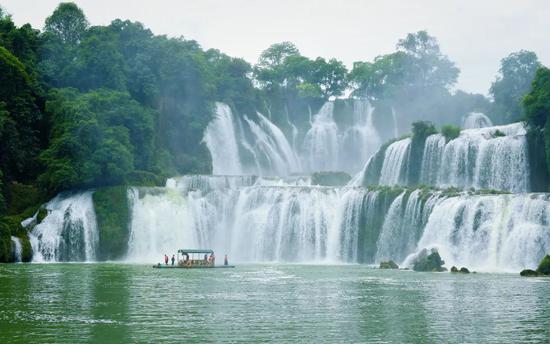 伴随着雨后的清新空气,采风团来到德天跨国瀑布景区,近距离感受蔚为壮观的德天跨国瀑布。