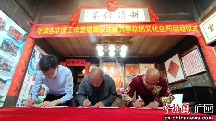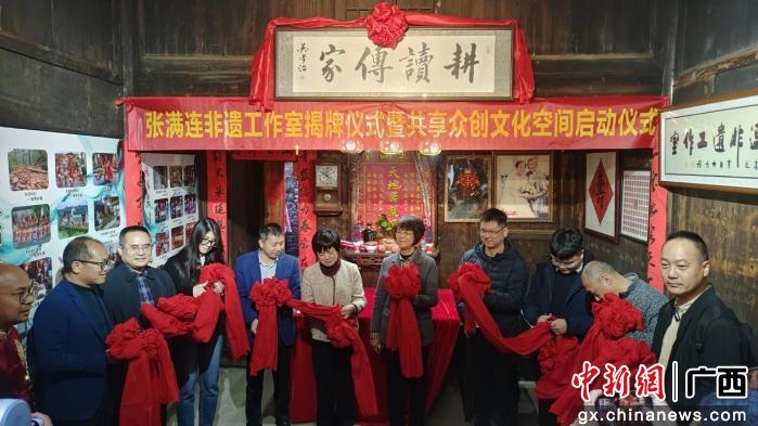 中新网广西新闻12月1日电(杨宗盛)11月29日,广西桂林市灵川县海洋乡东究村迎来一场跨越千里的文化交融。来自浙江宁波的文化工作者张满连回到家乡,将他的非遗工作室落户于此,在这条曾见证商贸往来的古道上开启新的文化传承之旅。“桂海遗韵·张满连非遗工作室”正式揭牌,同期启动的“湘桂古道共享众创文化空间”为这条历史通道注入了当代活力。