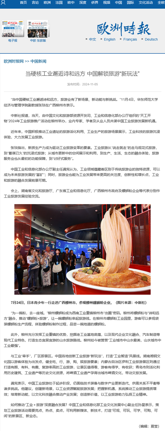 - 【法国欧洲时报网】当硬核工业邂逅诗和远方 中国解锁旅游“新玩法”