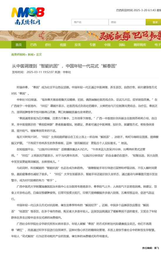 - 【巴西南美侨报网】中国年轻一代花式“解春困”