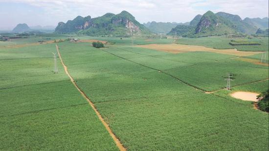 甘蔗是蔗糖的主要原材料。在崇左市江州区“双高”糖料蔗基地,连片的甘蔗地一望无际,上万亩甘蔗长势喜人。