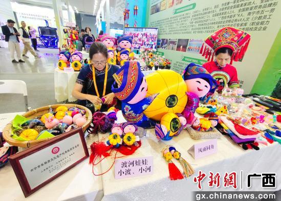 在非遗技艺展示区,非遗项目代表性传承人现场为参观者展示绣球、团扇、油纸伞、布贴等制作过程,精美的工艺和独特的民族风格吸引眼球。钦州坭兴陶、云南腾冲玉雕、重庆大足雕客、吉林葫芦彩雕、广州榄雕、红木雕刻等非遗产品也悉数亮相,让人目不暇接。