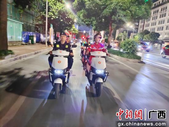 南宁市星期六爱心公益志愿者协会组织青年志愿者配合衡阳派出所参加夜间巡逻389场次。吴传辉 摄