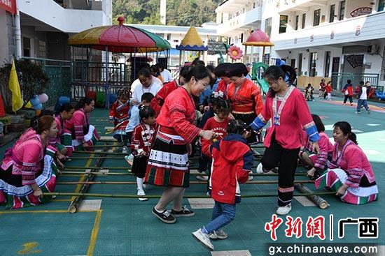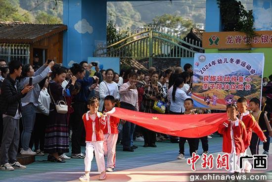 11月13日,广西桂林市龙胜各族自治县龙脊镇中心幼儿园举行“民族运动悦童心,亲子陪伴促成长"为主题的冬季运动会,共有200多名师生和家长参加。据了解,龙脊镇中心幼儿园位于国家4A级龙脊梯田景区所在地。该校生源为苗、瑶、侗、壮、汉等多种民族的少儿,其中以壮、瑶、汉民族居多。