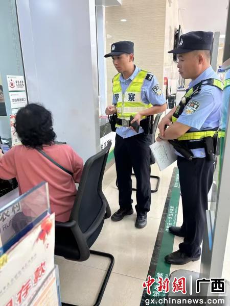 中新网广西新闻11月16日电 (周柳宁 唐昭平)“谢谢公安,要不是你们及时赶到,我这10万元养老金就被骗子骗走了!”近日,柳州70岁市民王奶奶遭遇网上投资诈骗,在银行准备提取10万元现金转给骗子时,被银行工作人员发现了异常,及时报警。赶到现场的柳州市公安局鱼峰分局民警,马上开展反诈宣传,制止住了老人的转账行为,成功为老人保住了10万元养老金。