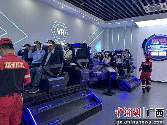 考察团体验VR技术开展安全体验教育。南宁壮小安应急安全科教中心供图