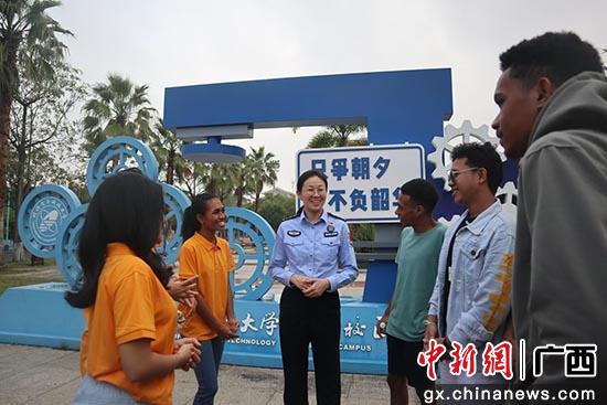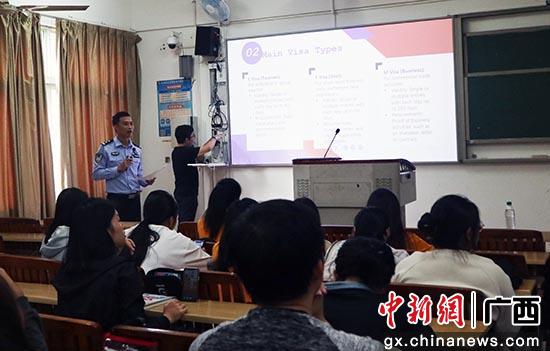 中新网广西新闻11月30日电(黄晓文 王欣佩)11月28日,北海出入境边防检查站法律宣传队受邀到桂林科技大学北海校区,为来自越南、东帝汶、印度尼西亚、缅甸等国家的留学新生开展普法活动。