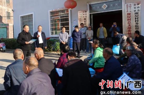中新网广西新闻12月5日电 广西壮族自治区应急管理厅近日组织干部职工到乡村振兴定点帮扶联系的贺州钟山县公安镇廖屋村,开展“铸牢中华民族共同体意识”主题宣传活动。
