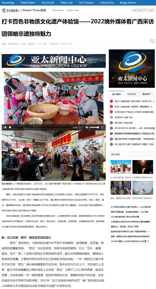亚太通讯社:打卡百色非物质文化遗产体验馆