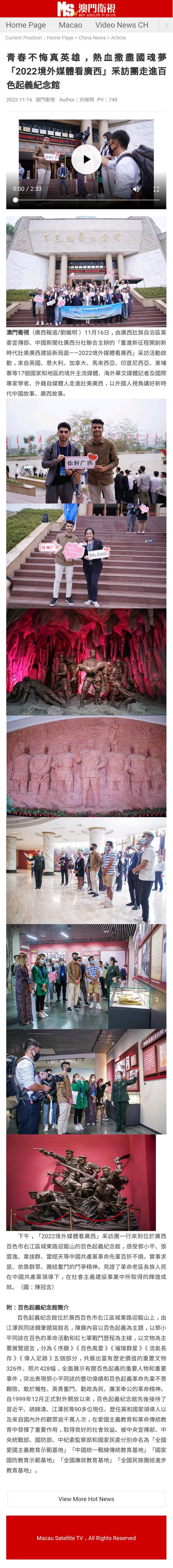 摘要提示:下午,「2022境外媒體看廣西」釆訪團一行來到位於廣西百色市右江區城東路迎龍山的百色起義紀念館,感受鄧小平、張雲逸、韋拔群、雷經天等中國共產黨革命先輩百折不撓、實事求是、依靠群眾、團結奮鬥的鬥爭精神。