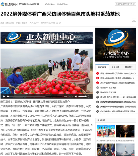亚太通讯社:2022境外媒体看广西采访团体验百色市头塘村番茄基地