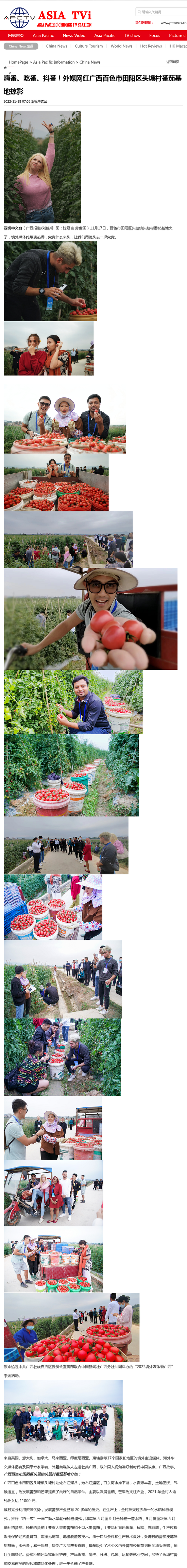 亚视中文台:外媒网红广西百色市田阳区头塘村番茄基地掠影