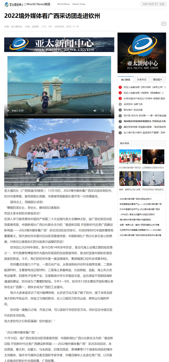 亚太通讯社:2022境外媒体看广西采访团走进钦州