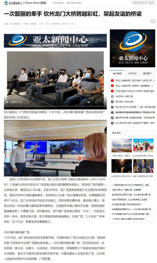 亚太通讯社:钦州龙门大桥跨越彩虹,架起友谊的桥梁