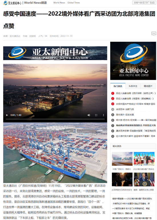 11月19日,“2022境外媒体看广西”釆访活动采访团一行,来到北部湾港集团,感受一流的设施,一流的技术,一流的管理,一流的服务。