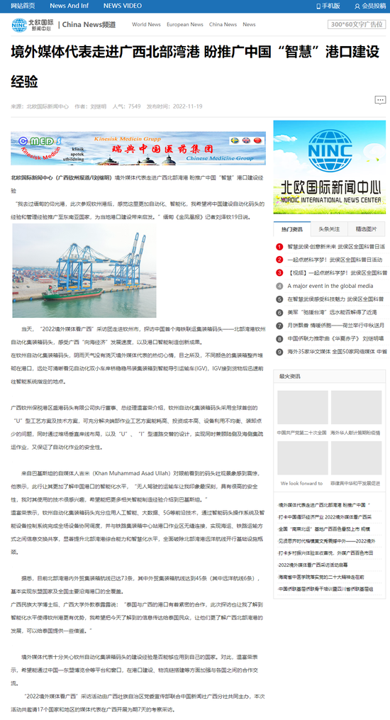 北欧国际新闻中心:境外媒体代表走进广西北部湾港
