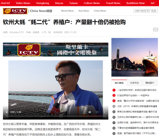 斯里兰卡国际中文电视台:钦州大蚝“蚝二代”养殖户:产量翻十倍仍被抢购